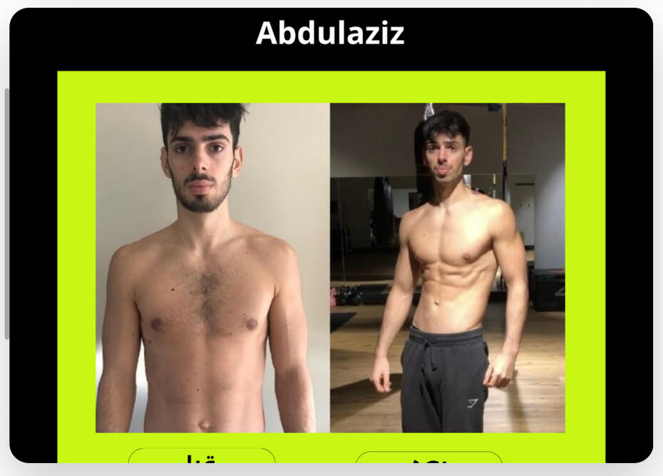 ما تتخيلوا قد ايش غيرت الخطة فيني وفي نفسيتي موضوع النحافة كان هم بالنسبة ليا ماتدرون كيف تغيرت حياتي ونفسيتي لما بدأت اشوف نتائج ولما حسيت قد ايش الكوتش متحمس معك ومبسوط من النتائج اللي قاعد تحصل عليها ، كلمة واحدة الله يجعلك بالجنة .